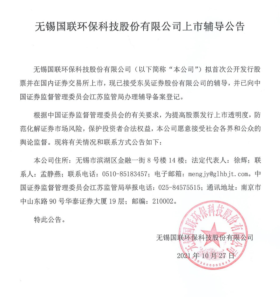 無(wú)錫國(guó)聯(lián)環(huán)保科技股份有限公司