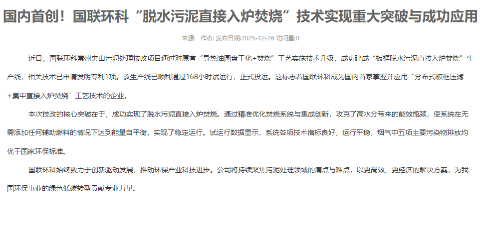 公司成立以來(lái),積極探索符合國(guó)家政策、適合國(guó)情的高效實(shí)用污泥處置工藝路線(xiàn),從技術(shù)選型、項(xiàng)目投資、建設(shè)和運(yùn)營(yíng)等方面,因地制宜為客戶(hù)提 供全方位的污泥處理處置一體化解決方案。目前公司在調(diào)質(zhì)深度脫水、資源化焚燒、資源化利用等方面擁有多項(xiàng)核心技術(shù),已形成“污泥調(diào)質(zhì)深度 脫水+干化+自持焚燒”、“污泥干化+耦合焚燒發(fā)電”和“污泥堿熱水解蛋白提取+資源化利用”三大成熟的技術(shù)路線(xiàn),其污泥處理處置的減量化、無(wú)害化、資源化利用效果處于國(guó)內(nèi)污泥處理處置技術(shù)的領(lǐng)先水平。公司在江蘇、上海、山西、廣西、四川等省市,已建成了多個(gè)污泥處理處置項(xiàng)目,運(yùn)營(yíng)穩(wěn)定,得到了生態(tài)環(huán)境部、住建部等相關(guān)部門(mén)的充分肯定,并以減量效果徹底 ...